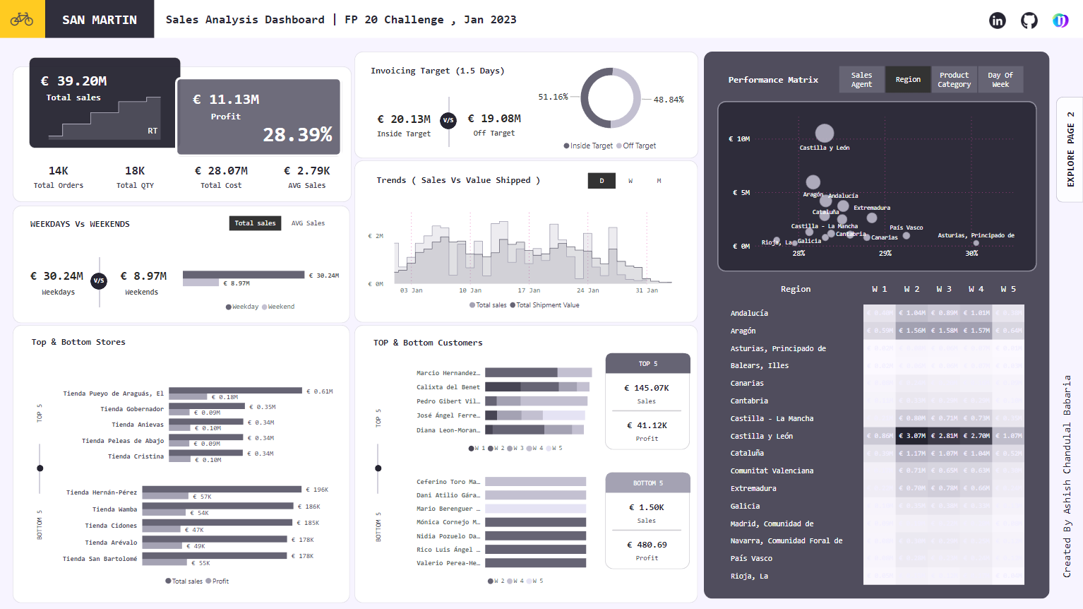I love the use of field parameters to dynamically change what’s being analysed in the performance matrix, it instantly gives you so many ways to look at how the sales are distributed.